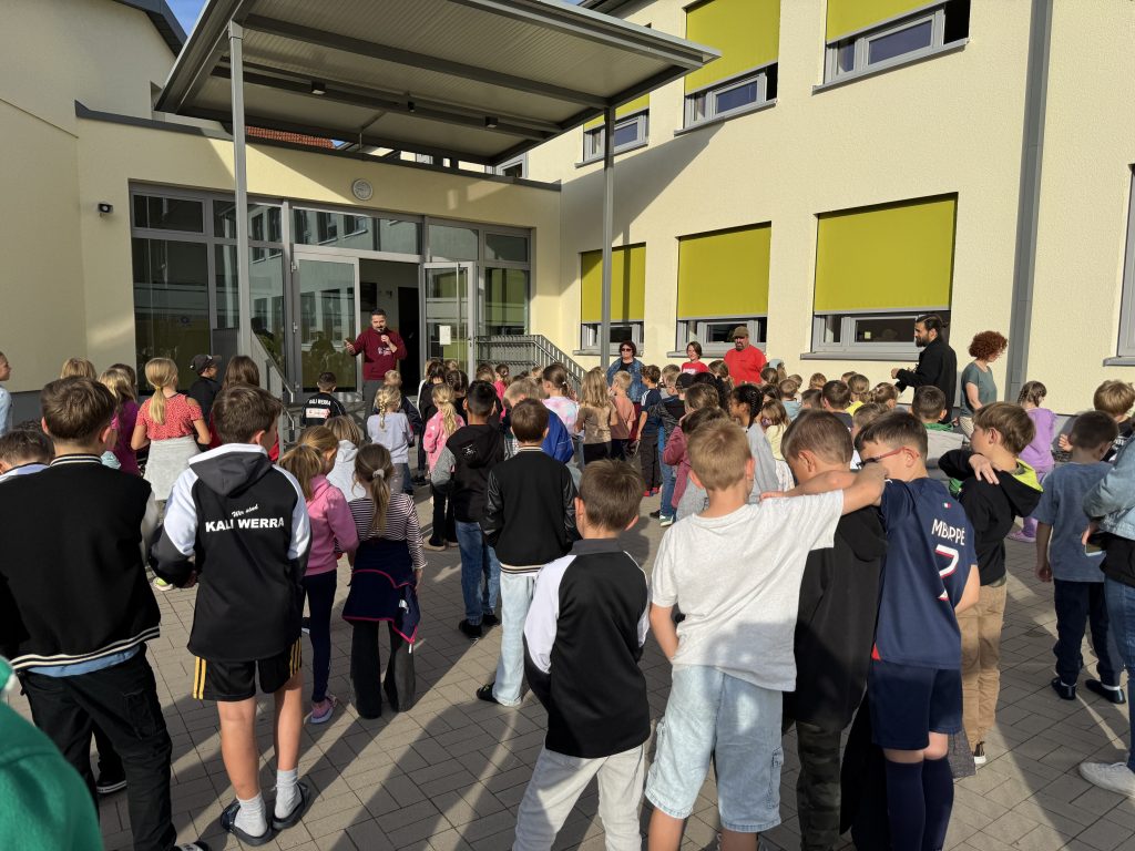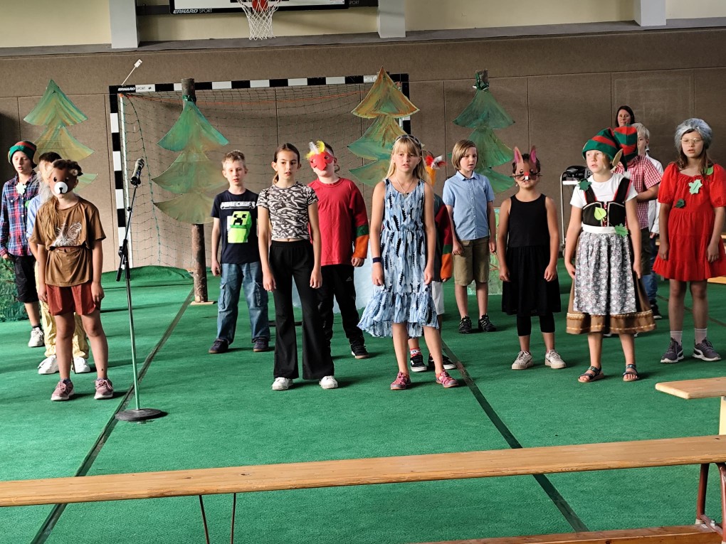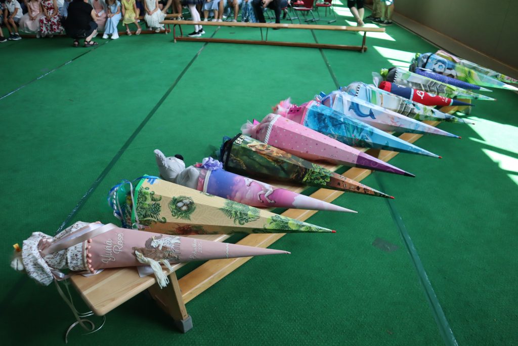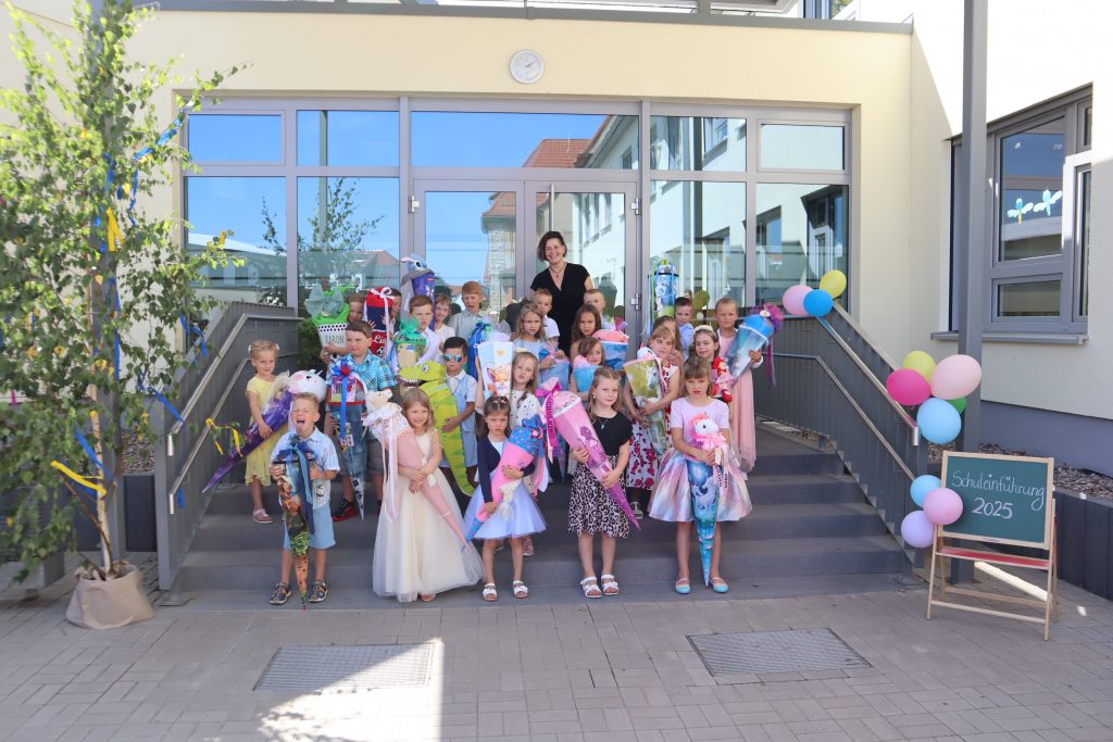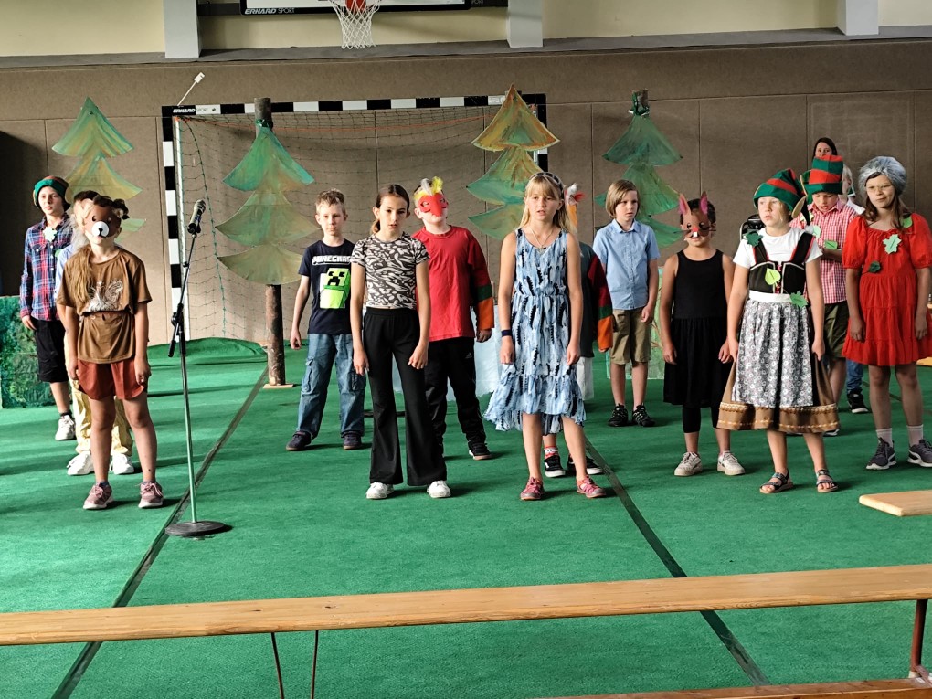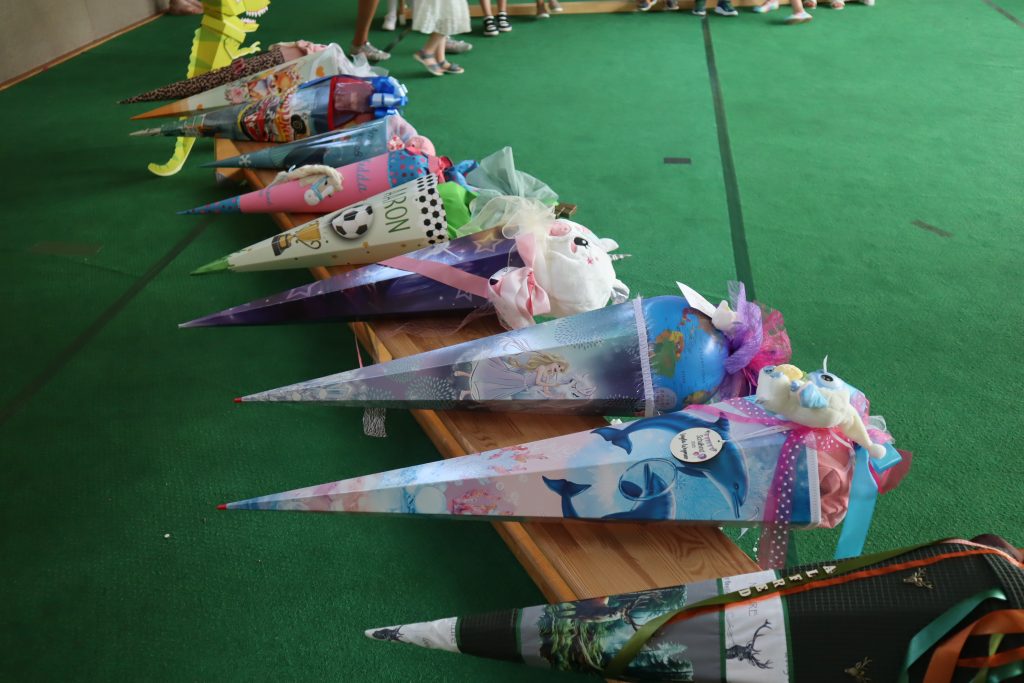 Am 09.08.2025 fand in der Grundschule „Am Kieselbach“ die Einschulungsfeier für die neuen Erstklässler der Leopardenklasse statt. In der Turnhalle der Schule zeigte die Klasse 4 ein kleines Theaterstück, in dem ein Wichtel zur Schule gehen wollte, um Lesen, Schreiben und Rechnen zu lernen. Gedichte und Lieder umrahmten den Auftritt. Die Schulleiterin Frau Volkert richtete herzliche Begrüßungsworte an die Familien und Schulanfänger. Anschließend überreichte die Klassenlehrerin Frau Bröcker die Zuckertüten an Ihre neuen Schüler und Schülerinnen.