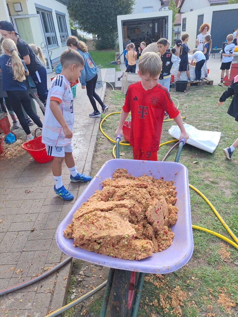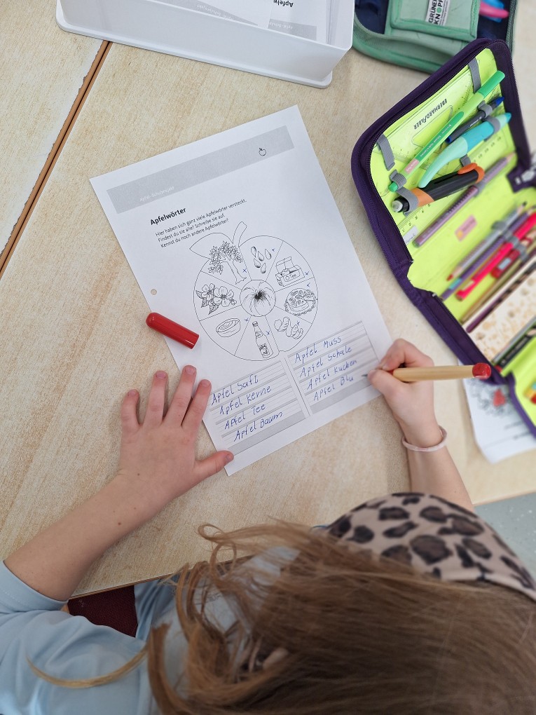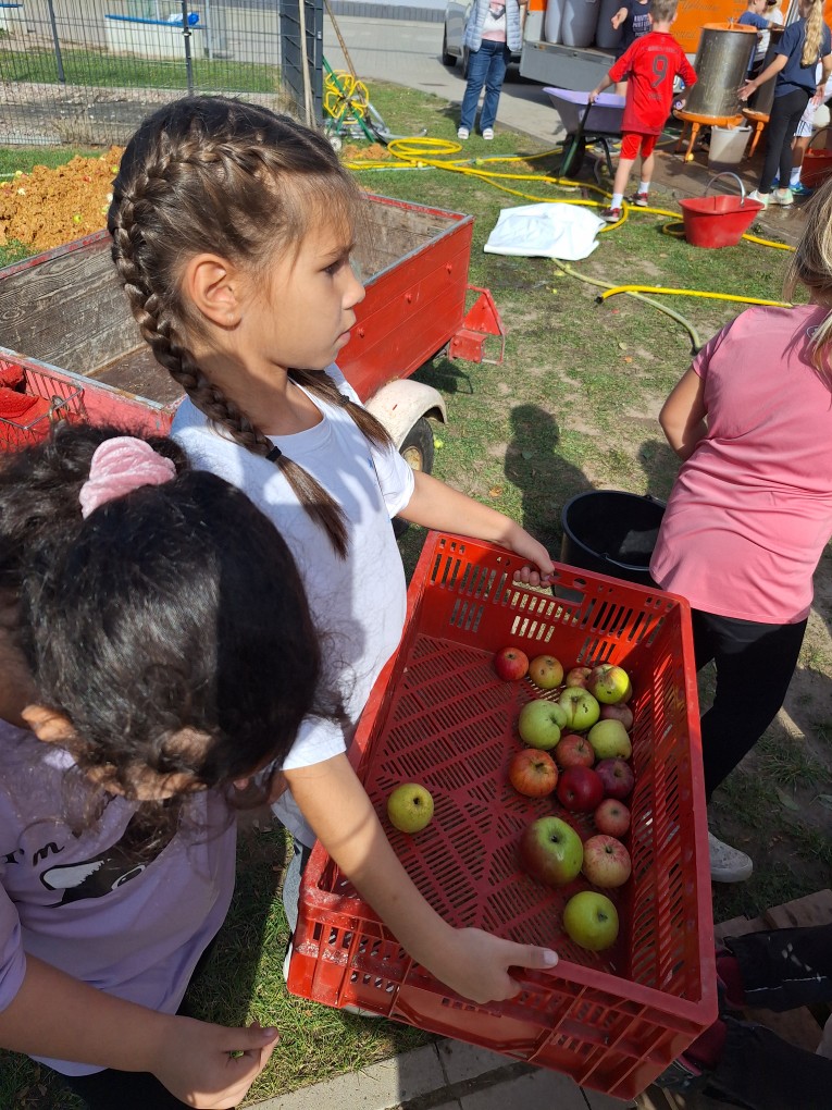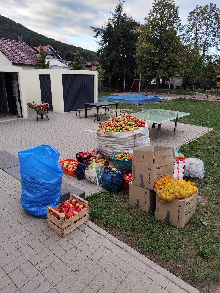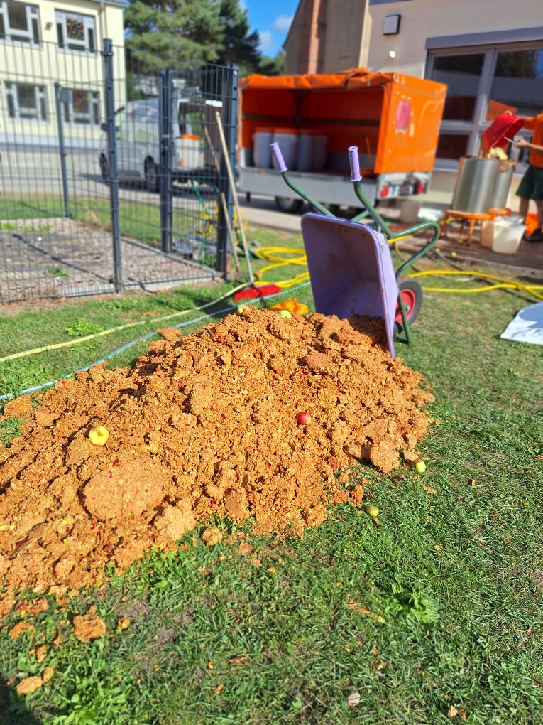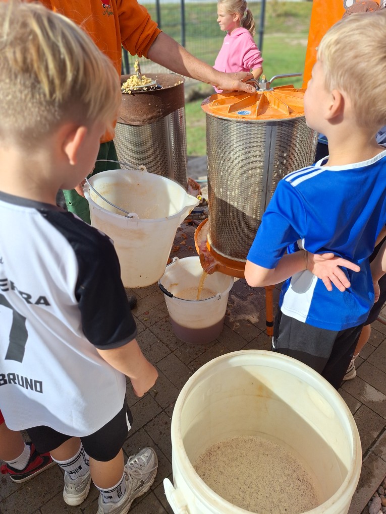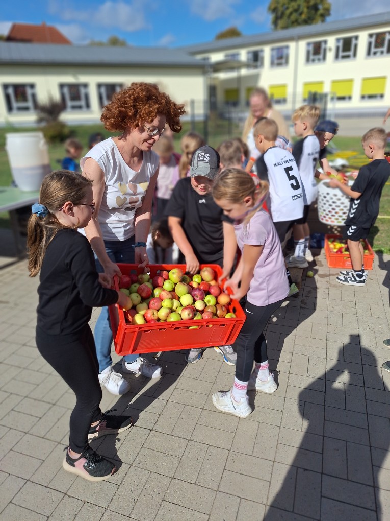 In diesem Jahr kombinierte man das. Einen halben Schultag beschäftigten sich die Kids mit dem „Apfel“. An vielen Stationen wurde Wissenswertes erarbeitet. Höhepunkt des Ganzen war, dass man mit Herrn Linse selbst Äpfel pressen konnte. Das erwies sich natürlich als ein großes Highlight und alle waren emsig dabei. Am Ende des Tages wurde rund 1 Tonne Äpfel gepresst. Der Saft wird zum Kieselbacher Weihnachtsmarkt angeboten. Von Herrn Linse konnte man außerdem noch so einiges über Streuobstwiesen, Apfelsorten usw. erfahren. Für die Kids ein unvergessliches Erlebnis.
